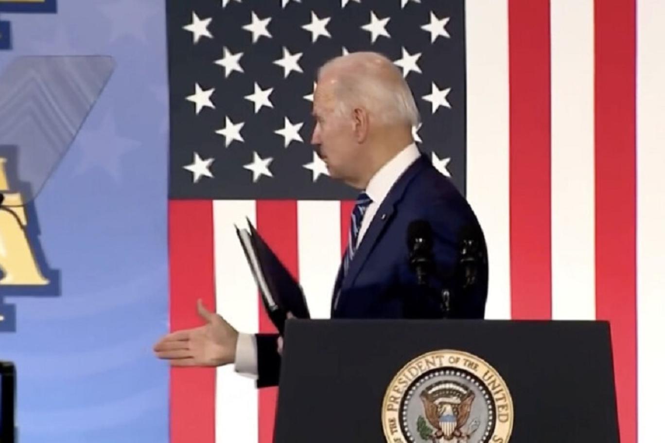 حيث أربك بايدن المتفرجين ومسؤوليه على حد سواء أثناء تجواله بعيدً ا عن المنصة خلال خطاب في مقر